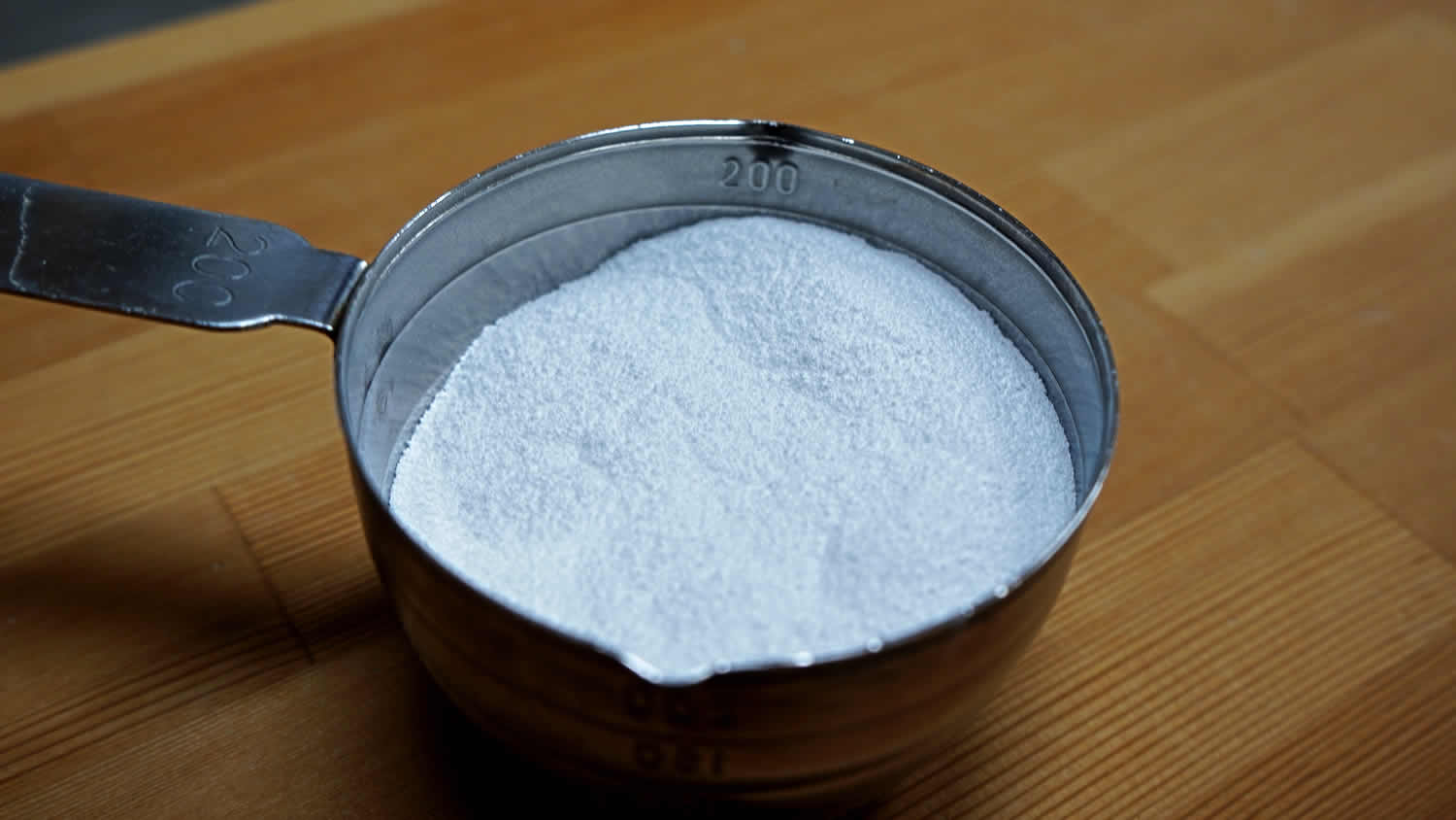 かんすいは麺づくりに欠かせない素材ですが、風味というか、苦みがあるもので、炭酸ナトリウムや炭酸カリウムなどを主成分としたアルカリ塩です。小麦粉にかんすいを加えるとタンパク質(グルテン)に働きかけ、弾力も展延性も増し食味としてはコシ、滑らかさが増します。